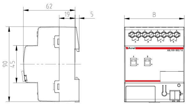 | 產品型號 | 模塊寬度(B)mm | 回路數 |