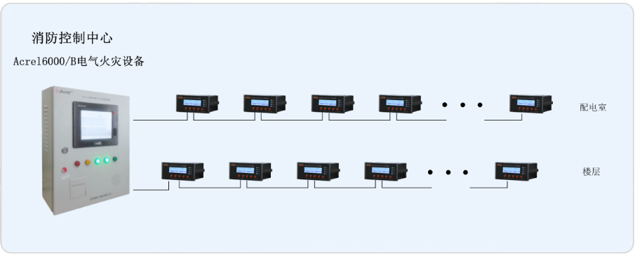 該項目監控范圍為平頂山市第一人民醫院樓層配電箱內的68只ARCM200系列儀表,監控裝置主要負責監控現場分布于配電箱中低壓出線的漏電狀況,及時提醒消控室值班人員,以防止電氣火災的發生。現場儀表以手拉手的方式并通過現場總線接入Acrel-6000/B后臺,組成電氣火災系統的大動脈,以確保醫院配電系統的電氣安全。