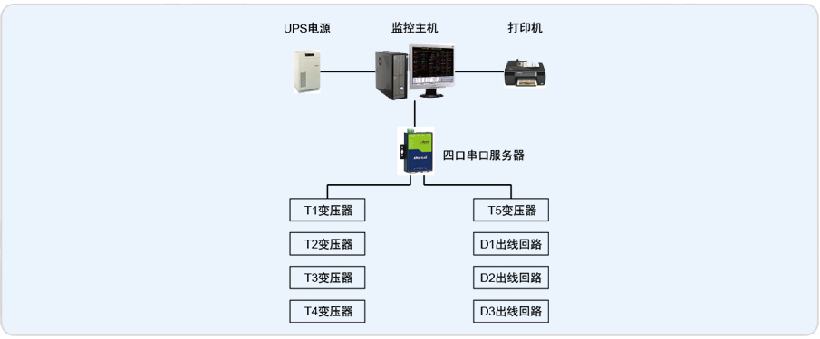 本項(xiàng)目為武漢愛機(jī)汽車配件有限公司變電所改造項(xiàng)目。根據(jù)配電系統(tǒng)管理的要求,需要對武漢愛機(jī)汽車配件有限公司3個變電所內(nèi)的8個低壓配出線進(jìn)行電力監(jiān)控,以保證用電回路的安全、可靠和高效的運(yùn)行。監(jiān)測范圍具體為T1、T2、T3、T4、T5、D1、D2和D3共8個變壓器的進(jìn)線柜側(cè)儀表進(jìn)行遠(yuǎn)程實(shí)時監(jiān)控和電能管理。該系統(tǒng)總計(jì)有8只儀表,分2條總線,都是直接通過屏蔽雙絞線走管道拉至值班室連接到串口服務(wù)器上,實(shí)現(xiàn)總線上儀表與監(jiān)控主機(jī)的數(shù)據(jù)連通。