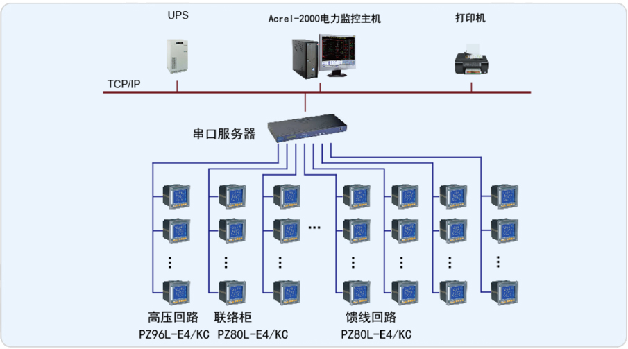 安科瑞電氣股份有限公司于2012年9月承接了現(xiàn)代海門制藥電力監(jiān)控系統(tǒng)的設(shè)計與實施。系統(tǒng)采用Acrel-2000電力監(jiān)控系統(tǒng),實現(xiàn)了對高壓配電回路安裝的安科瑞PZ96L-E4/KC儀表及低壓進(jìn)線、聯(lián)絡(luò)、饋線回路安裝的PZ80-E4/KC儀表進(jìn)行遠(yuǎn)程監(jiān)測,整個系統(tǒng)采用分層絡(luò)分布式結(jié)構(gòu),實現(xiàn)了對海門制藥用電運(yùn)行的遠(yuǎn)程監(jiān)控和集中管理。