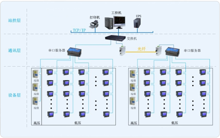 本系統(tǒng)主要監(jiān)測新建3.6萬KL/年精品啤酒項目聯(lián)合車間,該車間共有2組變壓器。3臺AM5微機保護裝置,5只ACR330ELH、41只ACR120EL、4只PZ72L-AI3多功能電力儀表接入電能管理系統(tǒng)。通訊總線直接接入變電所內(nèi)串口服務器,從而儀表與監(jiān)控主機的數(shù)據(jù)連通。安科瑞電氣股份有限公司為其配置一套Acrel-3000電能管理系統(tǒng),實時監(jiān)測變電所內(nèi)各個回路的電流、電壓、功率、開關(guān)狀態(tài)等電參量,由此達到變電所少人值守或無人值守的智能化管理。